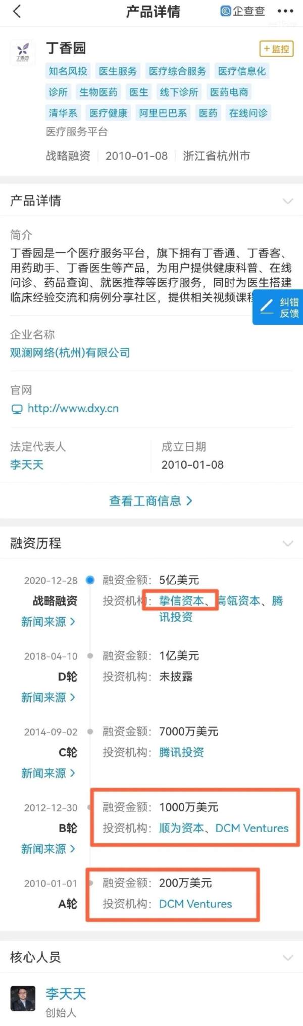 这是公开可查的,丁香园有来自挚信资本的投资。