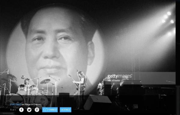 1974年,平克乐队在法国巴黎的一场演出上,投影出了巨幅的毛主席像: