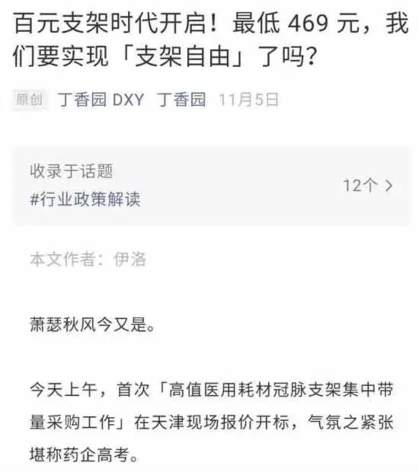 “丁香园”反对心脏支架降价,认为市场将会轰然萎缩到 10 亿级别,挑唆医生跟患者矛盾: