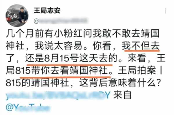 王志安是个什么货色韬哥这是就不再科普了,仅指出一个事实,即在8月15日日本投降日这天,他去日本的神厕拜鬼了。