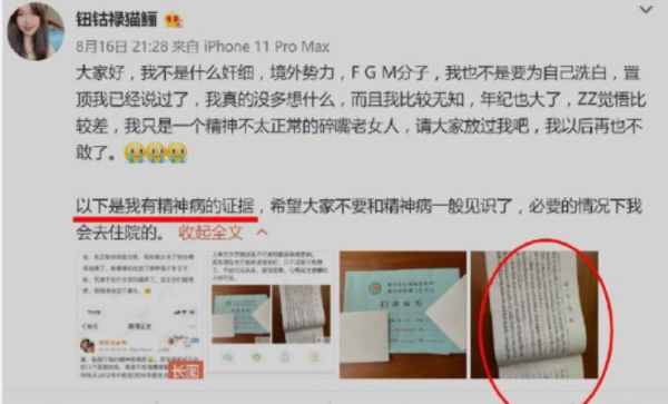 在她的各种汉奸、精日言论被网民发现之后, 她居然声称自己是“精神病”,在她的心里,有个精神病的招牌就可以出卖国家、出卖民族、出卖她自己了。