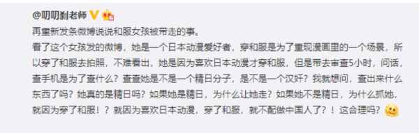 还有账户居然公然开始了造谣,声称“苏州女孩因穿和服被捕”。