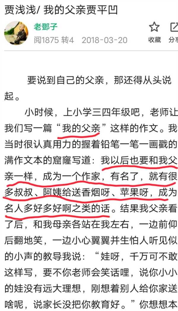 贾平凹的水平确实不坏,就是味儿有点大,贾浅浅没有世袭到老爹的文笔、才华、讲故事的水平,但那股味儿,那是世袭到了,而且将其发扬光大。