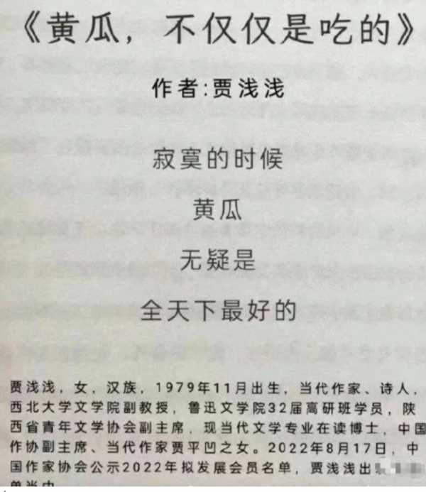贾浅浅申请中国作协会员的作品就两种,一种是研究她爸贾平凹的论文,一种是她自己的屎尿屁诗歌。