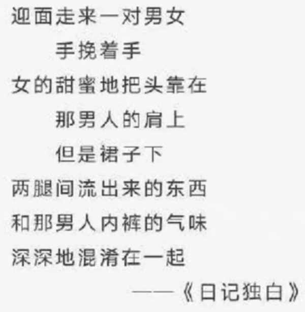 只要是个接受过小学教育的中国人,只要底线足够低,只要训练一个小时,我想他们都可以写出贾浅浅这种屎尿屁的分行“文学”......这种东西,说白了不就是“味儿大”嘛,只要思想肯花盆,村里的流氓也能整两句合辙押韵的荤段子。