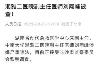 湘雅二院刘翔峰终于被查了!从“医疗过程中存在不规范行为”到“涉嫌严重违法被查”,我想这其中一定是有关部门已经掌握了相关证据,才会如此言说。