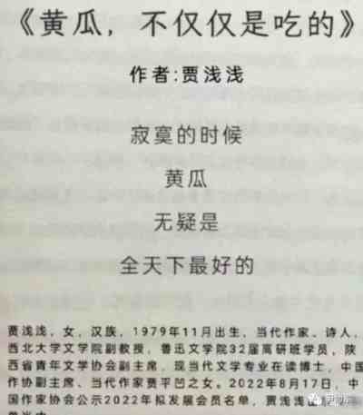要知道贾浅浅不仅是写出了屎尿诗,不仅将成为中国作家协会会员。其实她早已经是西北大学文学院副教授、陕西省青年文学协会副主席、鲁迅文学院32届高研班学员。