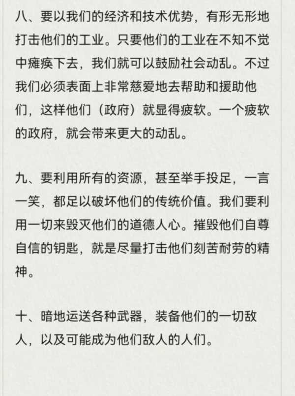 不信我们看看,这”十条诫令“我查找资料核实了,应该就是美国中情局真实的诫令。