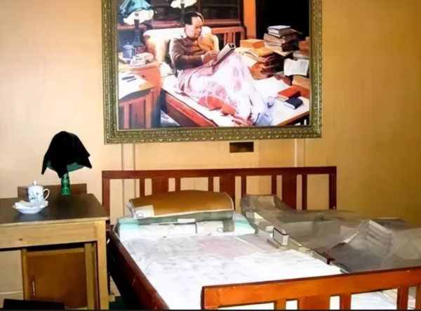 有些老工人一无所有,但唯独在床头桌前放着精美的相框,把主席画像给裱上去。