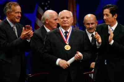 作为苏维埃社会主义共和国联盟的领导人……欣然接受了民主改革。他相信开放与重建……让世界变得更安全,让数以百万计的人获得更多的自由……致以我们最深切的哀悼。