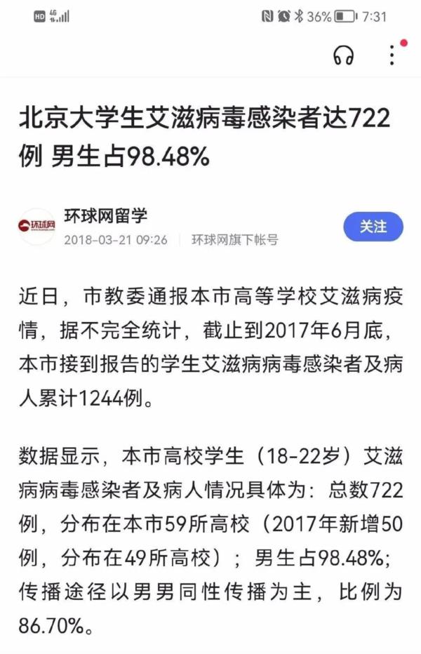 同理,男同一直是艾滋病的高危人群之一。以帝.都2017年统计的艾高校滋病患者为例,772例中男生占比高达98.48%,其中男男同性传播的就占了86.70%。
