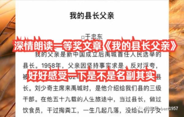 山东德州廉洁文化征文一等奖《我的县长父亲》被喷上了热搜第一。很多人看都不看,就以为是电影《夏洛特烦恼》中“我的区长父亲”靠拼爹获奖的情节在现实当中重演。