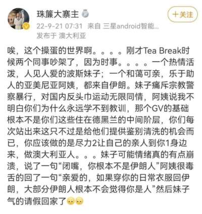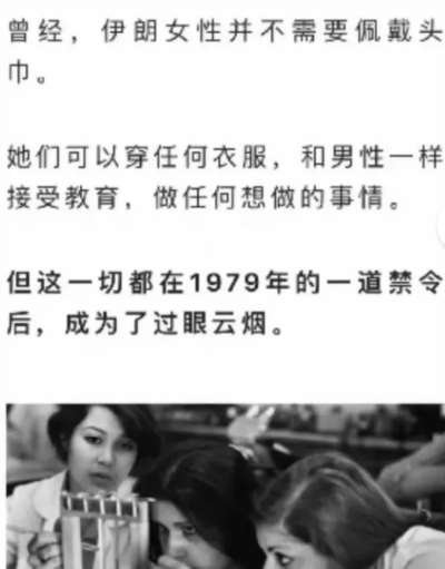 有人心疼女性,有人反抗暴政,这都可以理解,都值得同情。但有人含沙射影,有人阴阳怪气扯什么越南,有人拿面纱类比口罩,拿长袍影射防护服……还有人假装历史学家,鼓吹什么70年代的伊朗多么民主自由,说什么巴列维王朝的国王统治多么仁慈、现代、进步……那我们就要讨论讨论了。