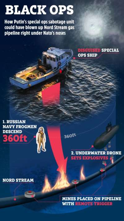 一些西方军事专家称,俄罗斯特别行动破坏小组的潜水员完全有能力在北约的眼皮底下炸毁北溪天然气管道。