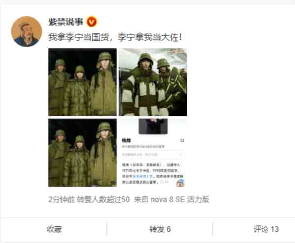 有网民很尖锐的怒斥李宁:我把李宁当国货,李宁把我当大佐?[吐]