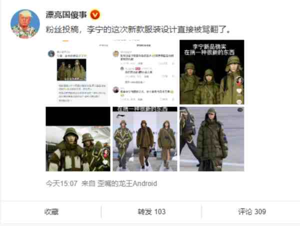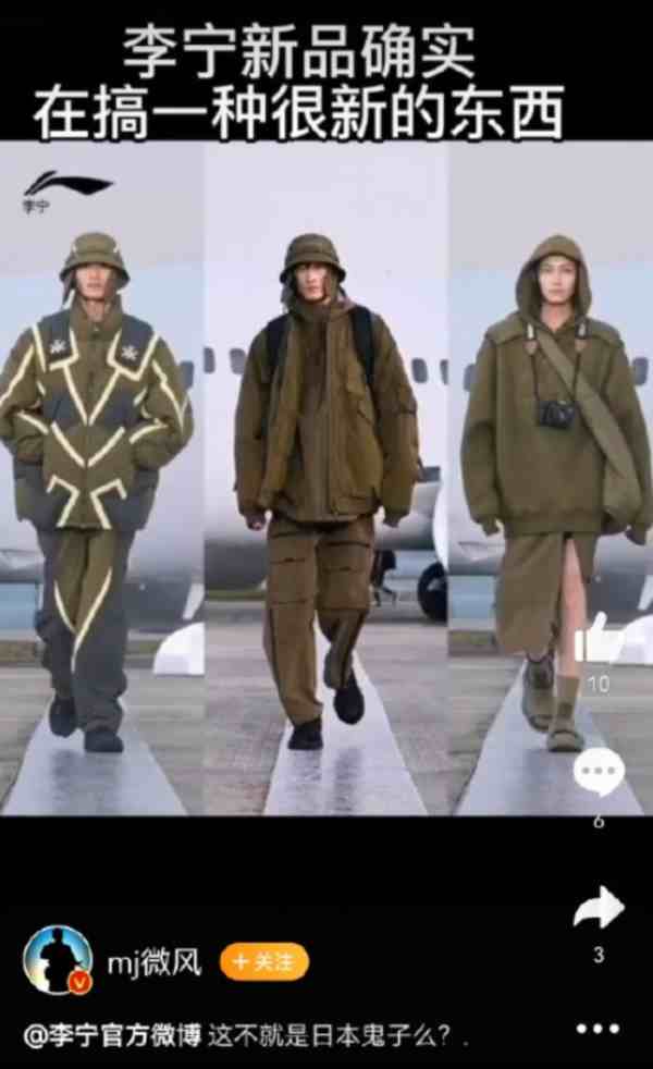 李宁新款衣服引热议,网民惊叫“鬼子来了”