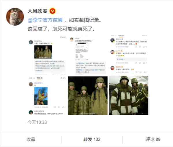 目前,不少网民跑到李宁公司的官方微博下留言,画风老铁们自己感受一下。