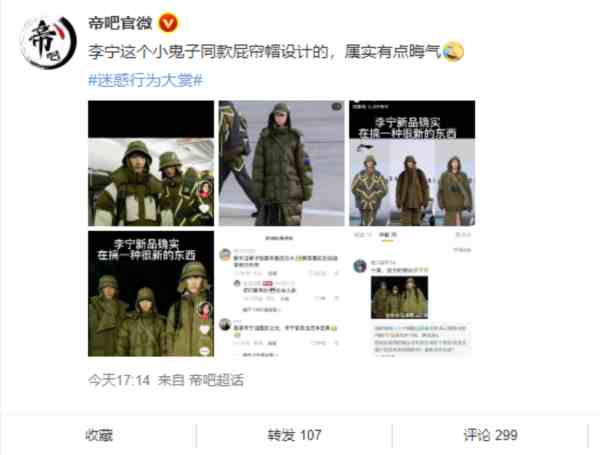 有知名博主则指李宁的这款小鬼子同款屁帘帽设计,属实有点晦气。