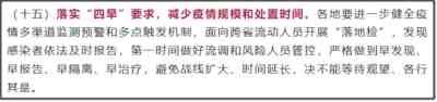 20条的第15条,是明确说了,“落实“四早”要求,减少疫情规模和处置时间”、“严格做到早发现、早报告、早隔离、早治疗,避免战线扩大、时间延长,决不能等待观望、各行其是。”