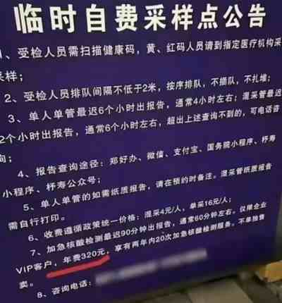 要是这么看的话,郑州推出的核酸VIP服务年费只收320元也并不贵嘛,试问有谁今年没做过起码几十次核酸呢?