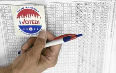 当地时间2022年11月8日,美国纽约,选民来到皇后区的投票站。