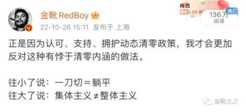 我们可以反对动态清零政策中出现的任何官僚主义、形式主义、以权谋私、买办黑手、一刀切、扩大化——事实上我本人都十分关注这些基层乱象并经常用微博帮忙转发扩散——但是,我这么做恰恰正是基于我支持动态清零。