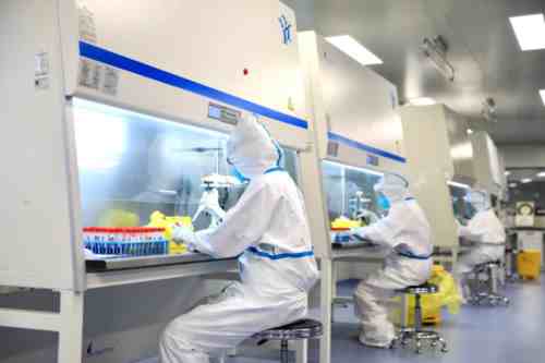 温岭市疾病预防控制中心实验室内,检验人员正在开展核酸检验工作