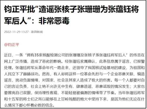 不过,这时候网络舆论上,开始出现造谣说张珊珊是谁的后代,这个是已经被辟谣了。