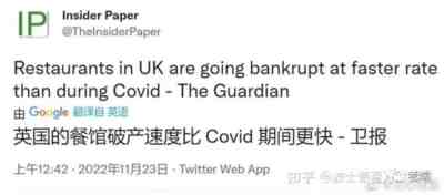 你以为放开之后,经济就好转了,生意就好做了?幼稚。不说放开后中国的制造业会遭受严重的冲击,就是大家以为放开后最容易恢复的餐饮业生意也未必就能好起来。英国的餐馆在放开之后,不是生意更好了,而是破产的更多了。