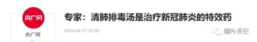 还是在2020年4月17日在国务院联防联控机制新闻发布会上,王伟教授告知媒体,清肺排毒汤是适用于轻型、普通型、重型新冠肺炎的通用方剂,具速效、高效、安全的特点,是治疗此次新冠肺炎的特效药。在武汉疫情最凶猛的时段,为定点医院、隔离点总共配送了39万袋清肺排毒汤,另外为全省配送了50万剂复方颗粒剂,使用量非常大。统计数字显示,截至4月12日零时,武漢收治的病人治愈出院率高达99.28%。这一数据可谓铁证如山,王伟教授因而明确宣告:“清肺排毒汤就是治疗新冠疫情的特效药”!