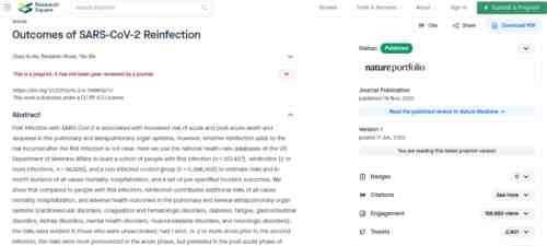 《自然》杂志紧跟又发了一篇研究论文,跟踪研究了新冠病毒重复感染的后果。