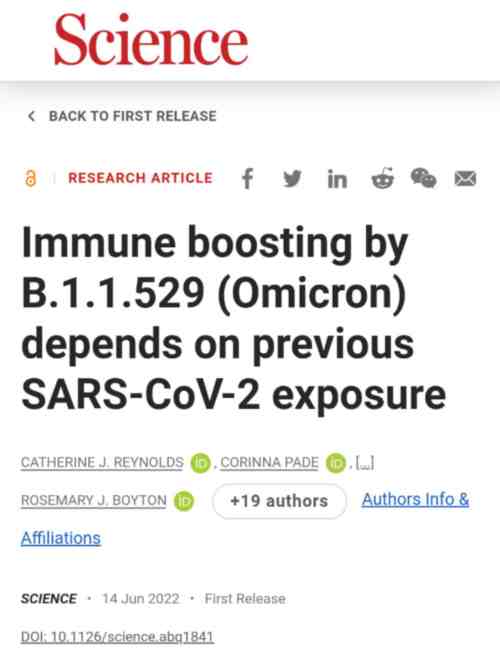 而美国《科学》杂志在今年6月刊登的论文,更加尖锐地指出:通过感染奥密克戎,不会得到免疫力,反而是削弱!