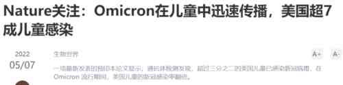 另一个显著的事实是,今年5月份美国的一项研究统计显示,美国已经有超7成的儿童感染过Omicron:
