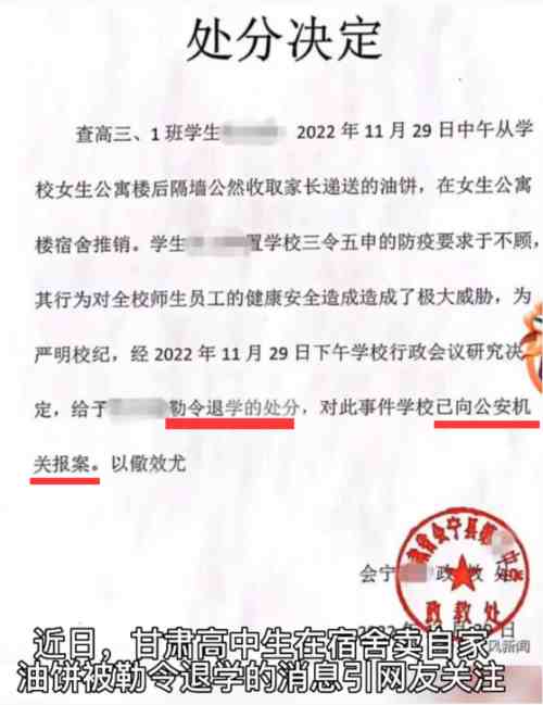 宿舍卖油饼,“勒令退学,并向公安机关报案”;