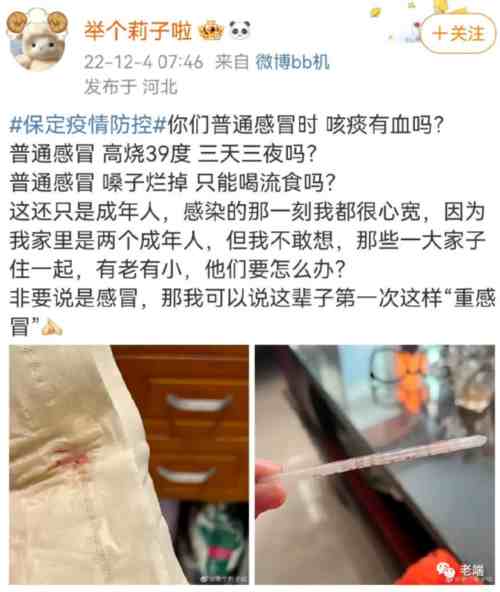 所以青松想说,这根本就不是一个小感冒,阳起来高烧39度三天三夜不退,嗓子疼到像烂掉一样,还有博主形容就像吃了玻璃渣,还顺带咳血。如果是小孩子的话,高烧40度太平常了。