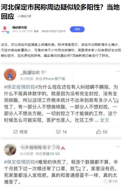 不管保定到底是什么情况,网友反馈的客观也好,网友反馈的夸大也好,官方实事求是也好,官方涂脸擦粉、统计片面不全也好,都已经成了既成事实,打口水仗对于事实没有多大的益处、既不能消灭疫情,也不能缓解大家的病痛。