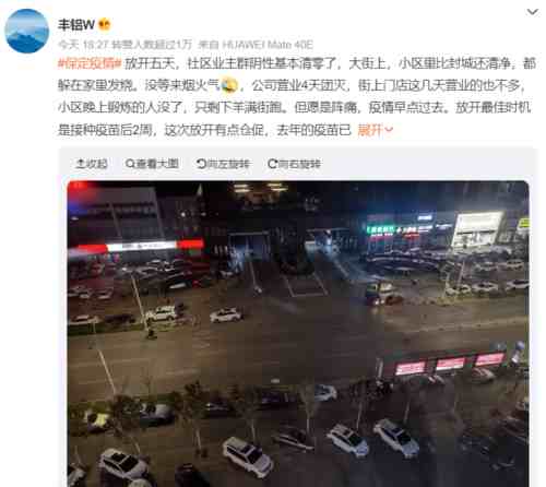 网友丰铝:放开五天,社区业主群阴性基本清零了,大街上,小区里比封城还清净,都躲在家里发烧。没等来烟火气,公司营业4天团灭,街上门店这几天营业的也不多,小区晚上锻炼的人没了,只剩下羊满街跑。但愿是阵痛,疫情早点过去。