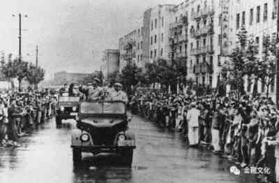 图为1958年下午2点15分,65岁的毛主席身穿银灰色风衣,乘敞篷车来到蜂蛹成群的合肥市民中间,向合肥市民挥手执意。