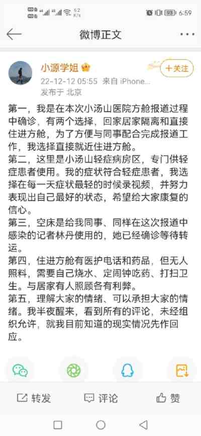 女记者对于自己住进方舱,发了个微博进行解释,我觉得重点应该是第四条:小汤山方舱医院要反思了,你们竟然让小仙女自己烧水,自己吃药,自己打扫卫生,你们就不能给安排个仆人照顾一下吗?你看把人家小仙女给委屈的,哪受过这种罪,哪吃过这种苦。