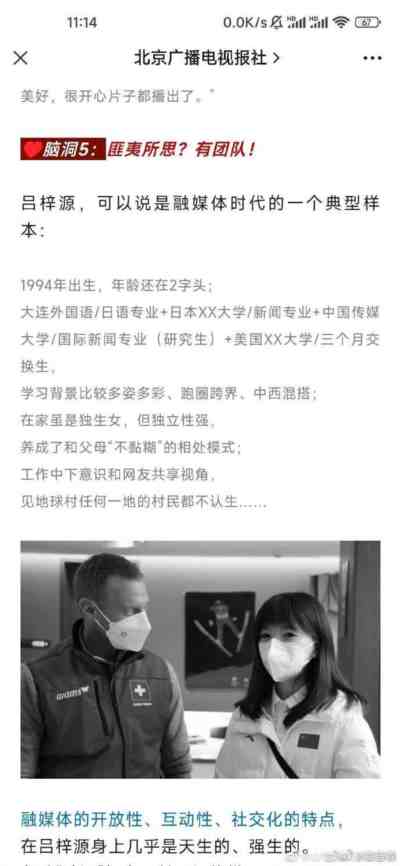 有网友找到了北京广播电视报社关于吕梓源的报道,原来她是中国传媒大学研究生,去日本留学过,还去美国做过交换生,看了这些经历以后,她有这样的三观,也就无需过多解释了……不过这篇报道里夸她独立性强,没想到她却抱怨小汤山方舱还得自己烧水,说好的独立性强呢?