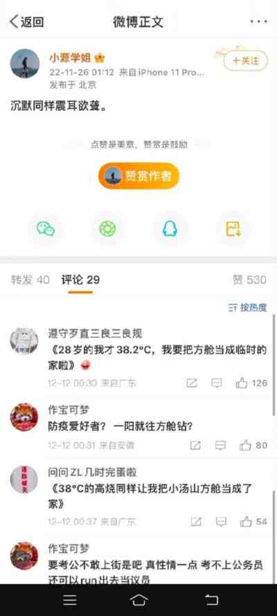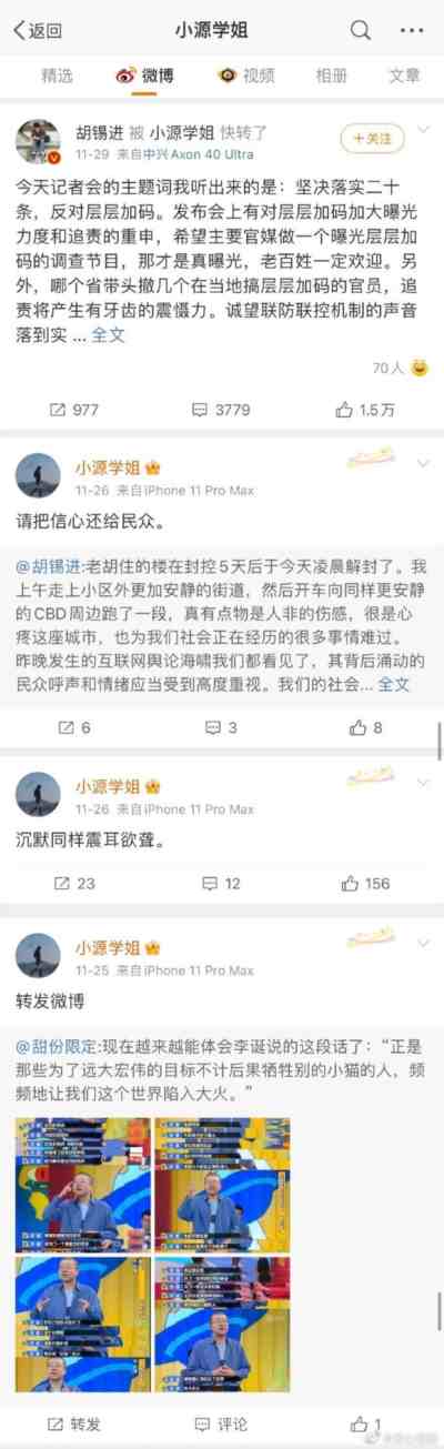 当很多学生举着A4纸闹事的时候,这位女记者疑似评论说“沉默同样震耳欲聋”。当老胡呼吁放开的时候,这位女记者评论说“请把信心还给民众”。