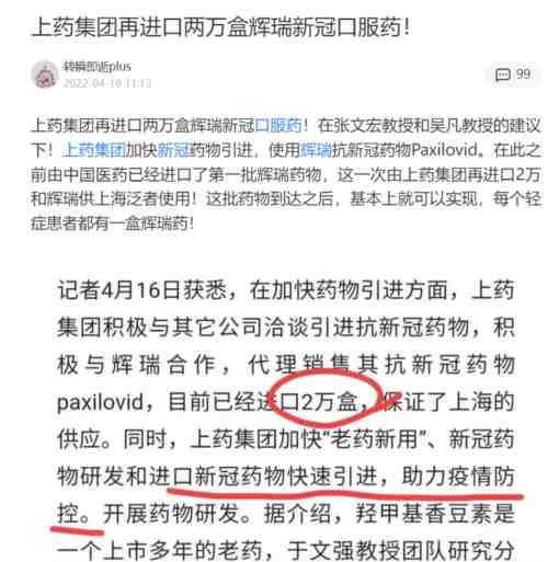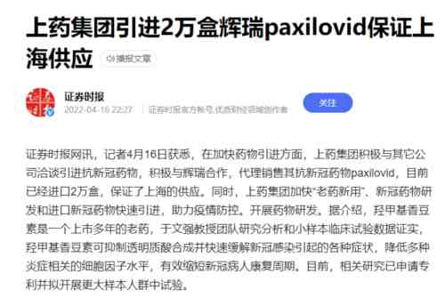 今年4月16日“证券时报”就发布过消息:《上药集团引进2万盒辉瑞paxilovid保证上海供应》,文章称上药集团是辉瑞的代理商。