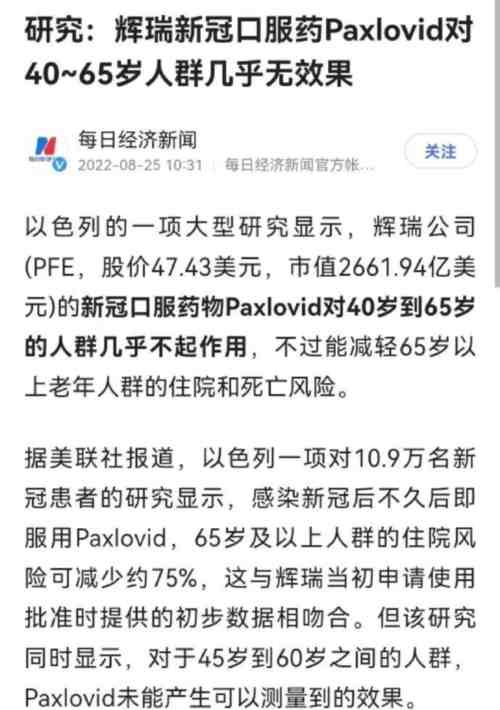 据今年8月以色列针对这款所谓的美国“特效药”所进行的一项大型研究,这款所谓的美国“特效药”对40岁到65岁的人群“几乎不起作用”。