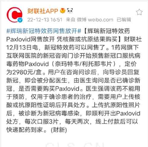 昨天,多家媒体报道,称所谓的美国辉瑞“特效药”网售开放。价格是2980元一盒。