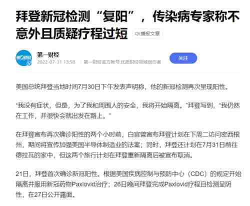 比如美国总统拜登,在今年7月21日首次确诊新冠阳性后,即开始隔离并服用这款所谓的美国“特效药”,然后在26日转阴。可是到了7月30日就又“还阳”了。