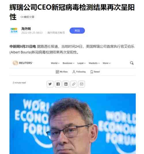 其实,生产这款所谓的美国“特效药”的辉瑞的CEO ,也是这样。今年8月15日,美国辉瑞公司首席执行官艾伯乐(Albert Bourla)感染新冠,在服用自家的“神药”后转阴。可是,和美国第一夫人同一天的8月24日,就也“还阳”了。