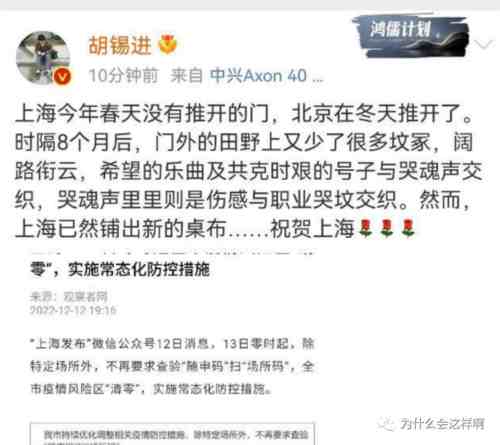 时间来到了2022年的冬天,按照胡锡进的话来说,此时的中国是上海春天就想推的门没有推开,终于推开了门的中国。