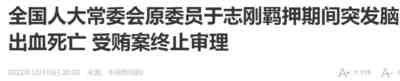晚间,一条重磅新闻传出,于志刚突发死亡,受贿案终止审理。