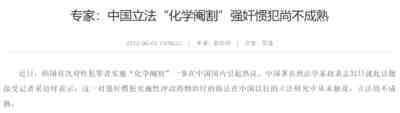 滑稽的是,十年前我国舆论界曾经强烈支持效仿外国对强奸犯实施化学阉割,彼时赵秉志教授却表示了强烈反对。看样子他们真的害怕。