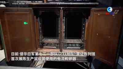 改陈后的侵华日军第七三一部队(731部队)罪证陈列馆首次展出生产鼠疫菌用的电流孵卵器。这是731部队当年专门做鼠疫菌用的,是证明731部队进行细菌实验的一件铁证。